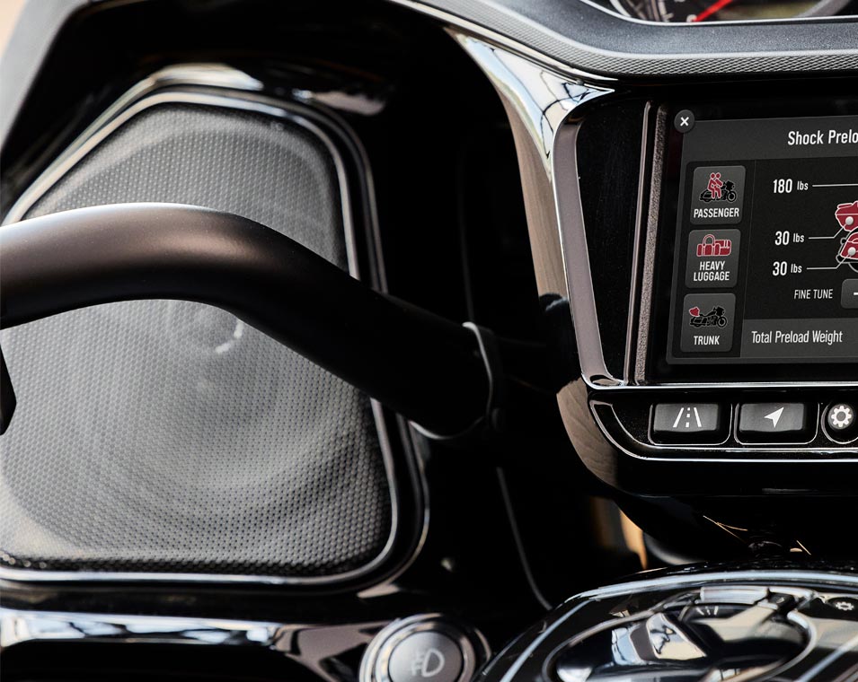 Meer dan 133 liter aan waterdichte, op afstand te vergrendelen opbergruimtes voor alles wat je mee wilt nemen onderweg. Je kunt de koffer ook in een handomdraai verwijderen om gewicht te besparen en de motorfiets een volledig ander profiel te geven.