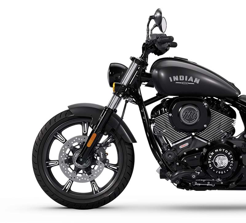 Met zijn lage zitpositie, solozadel en centraal geplaatste voetsteunen die ervoor zorgen dat je voeten zich onder je lichaam bevinden, geeft de Chief Dark Horse elke rijder maximale controle om vol vertrouwen te rijden.